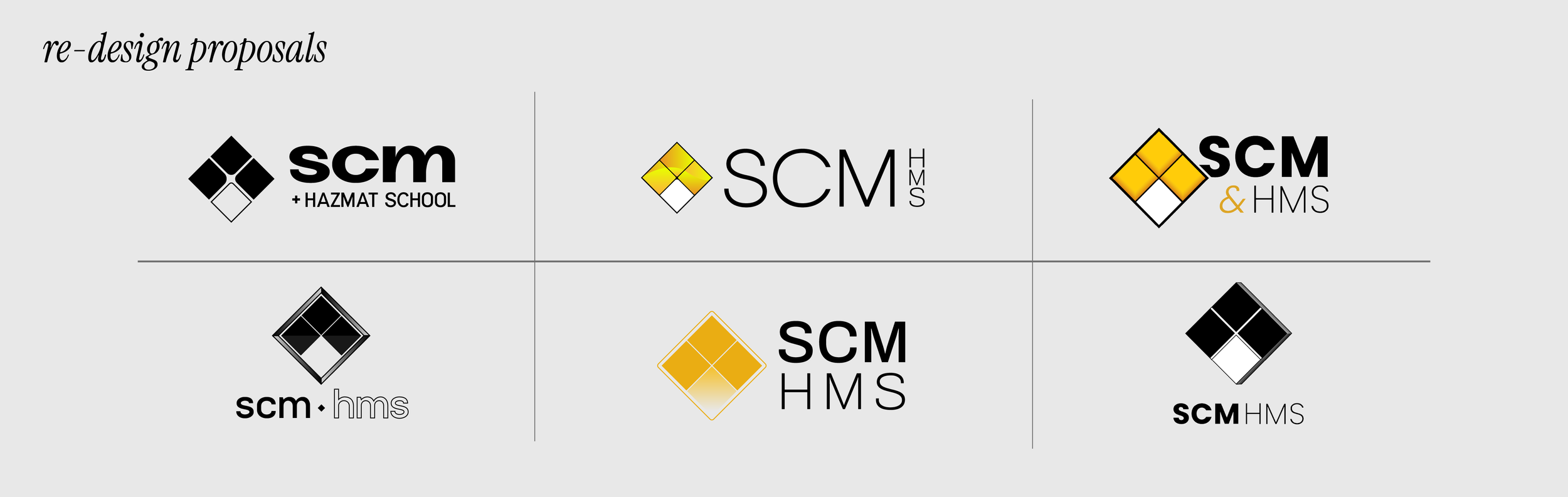 I led the brand strategy and visual identity refresh for Safety Compliance Management, redesigning the primary logo system for both SCM and Hazmat School and unifying the two brands into a cohesive, scalable identity.